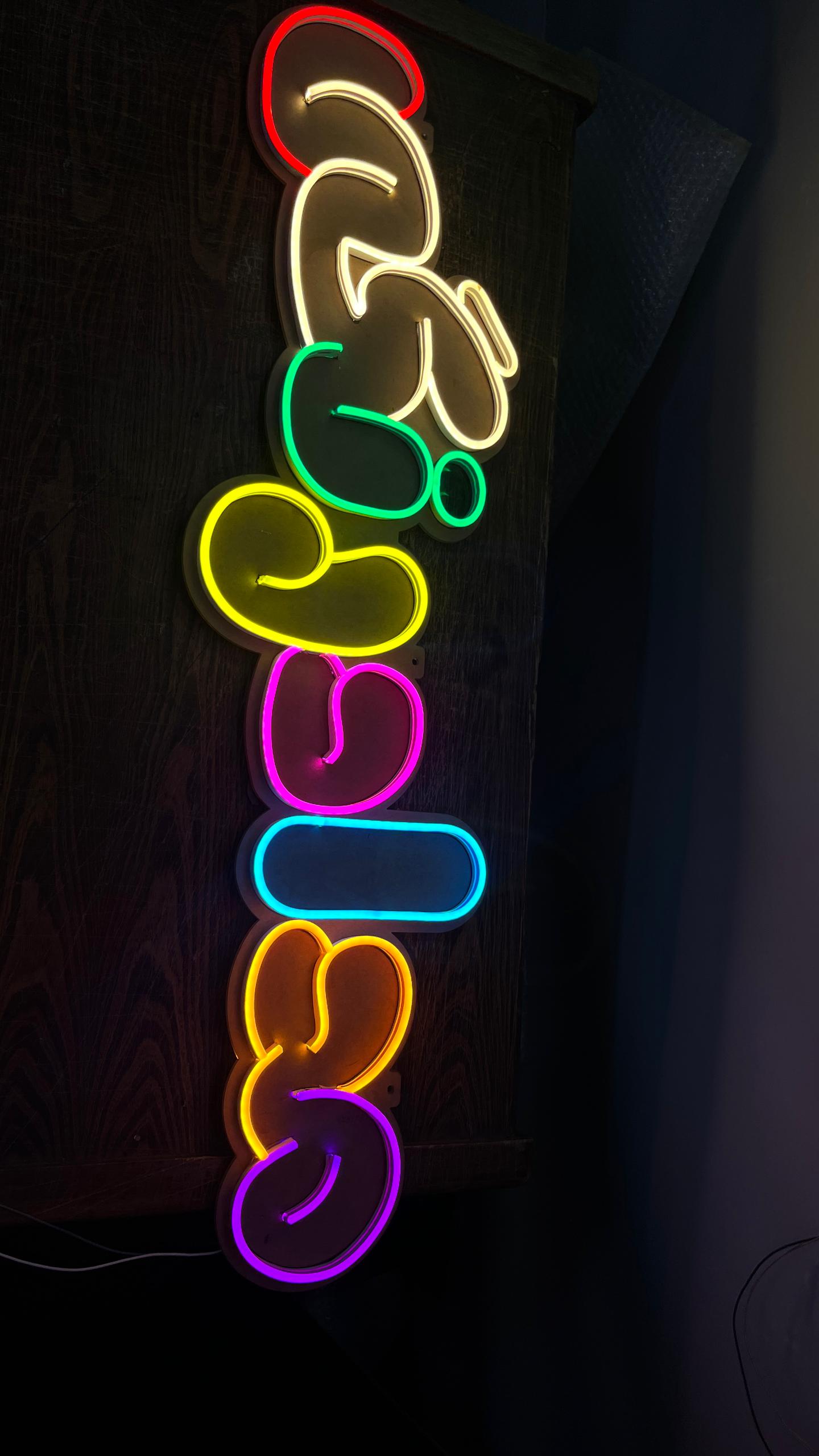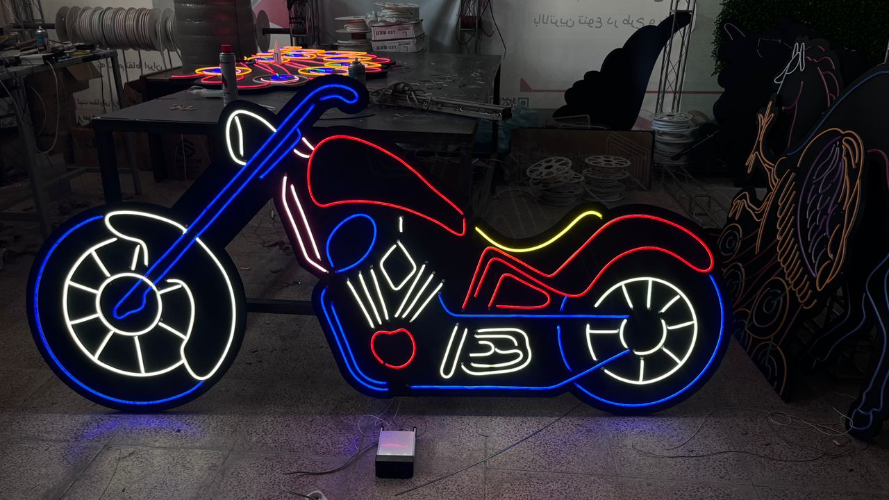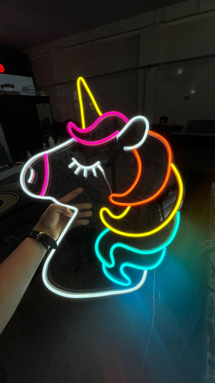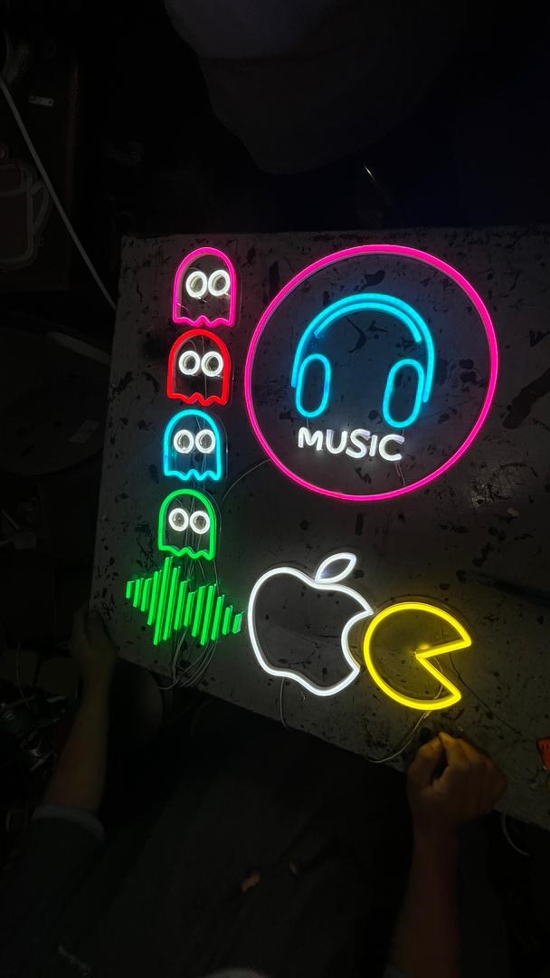 ۴. نمادها و لوگوها: برخی از نمادها و لوگوهای برندها و شرکتها با استفاده از تابلوهای نیونی طراحی میشوند. این تابلوها به آنها جذابیت و شناخت بیشتری میبخشند و هویت بصری قویای را ایجاد میکنند.