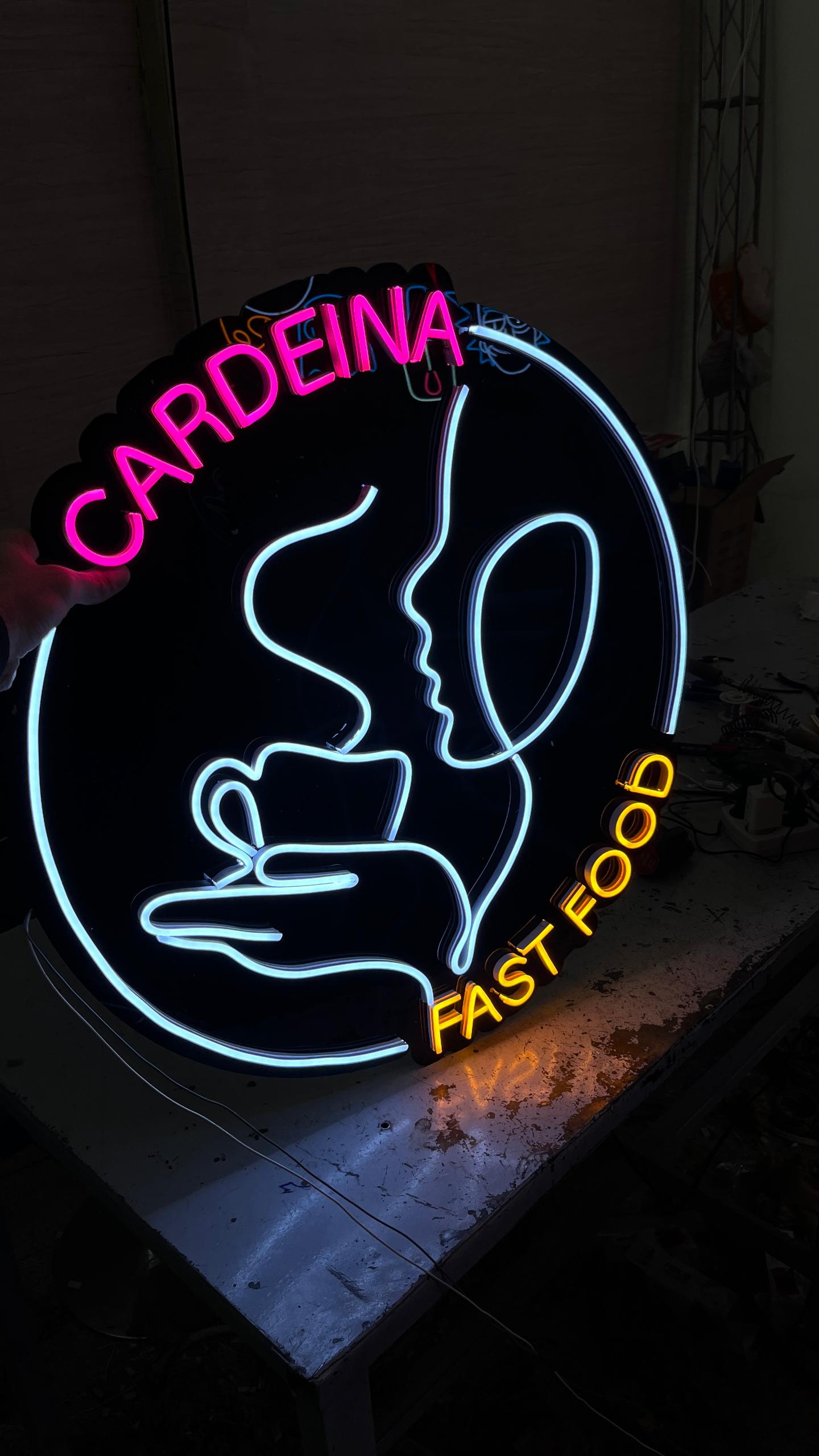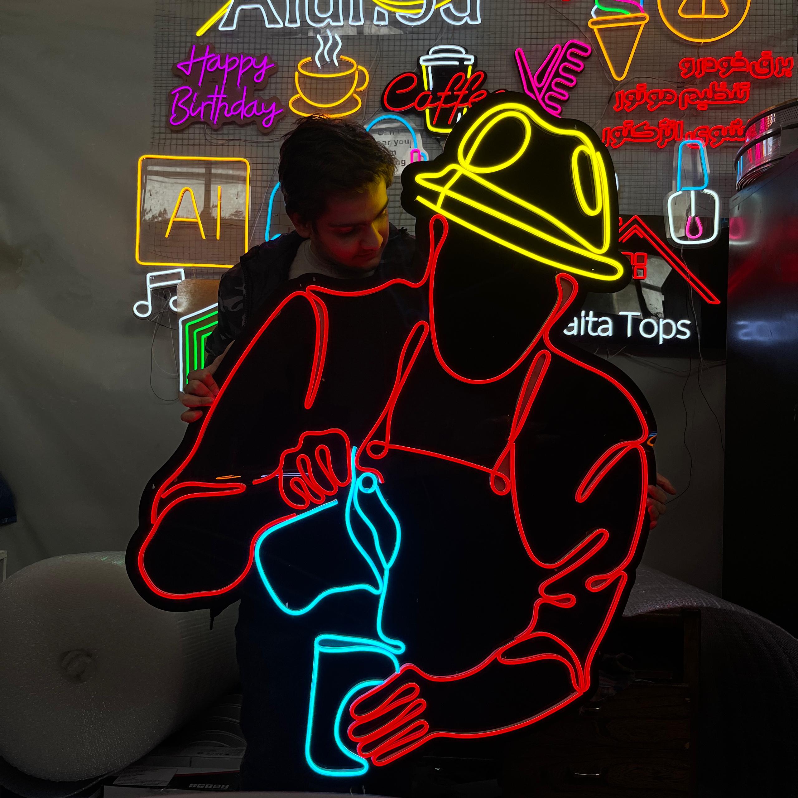 ۳. فضاهای تجاری و رستورانها: تابلوهای نیون در فضاهای تجاری مانند فروشگاهها، رستورانها، کافهها و هتلها استفاده میشوند. آنها جلوهای شیک و مدرن را به فضا میبخشند و برند را به خوبی نشان میدهند.